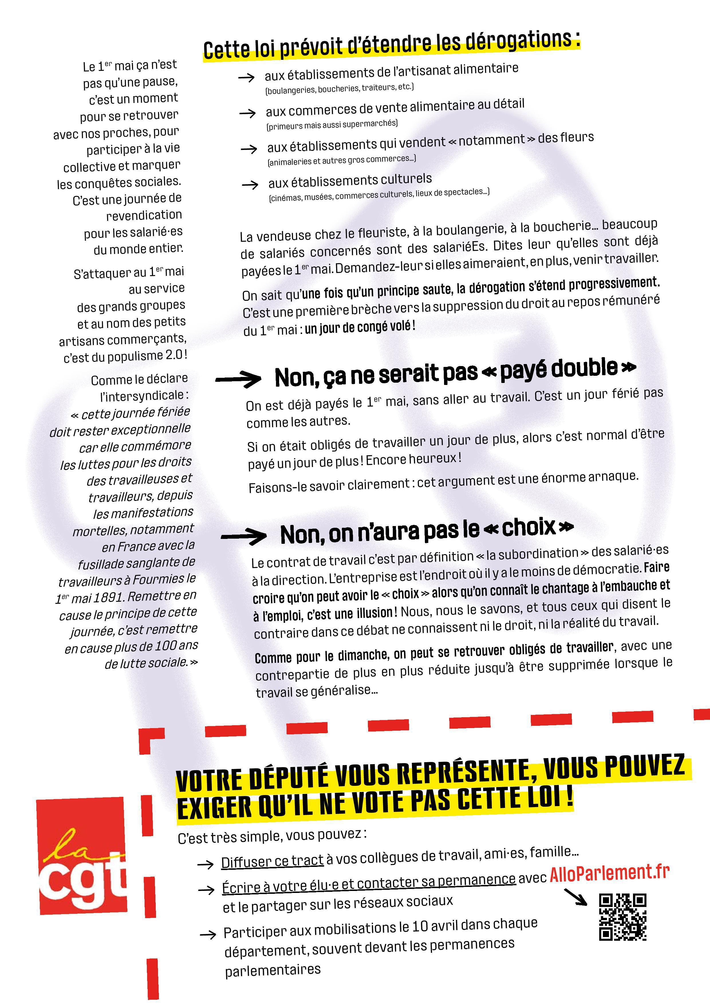 Une proposition de loi veut permettre le travail le 1er mai, au profit des grands groupes. La FNME‑CGT dénonce une attaque contre ce jour férié unique, garanti et payé. Elle appelle à interpeller les député·es et à se mobiliser avant le 10 avril.
